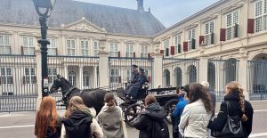 Jede Gruppe hatte einen Guide, der ihr auf ihrer Sprache die Stadt zeigte und etwas zu den wichtigen Gebäuden der Stadt erklärte. Wir besuchten zum Beispiel das Regierungsviertel und den Arbeitssitz des Königs, da Den Haag der Regierungssitz der Niederlande ist.