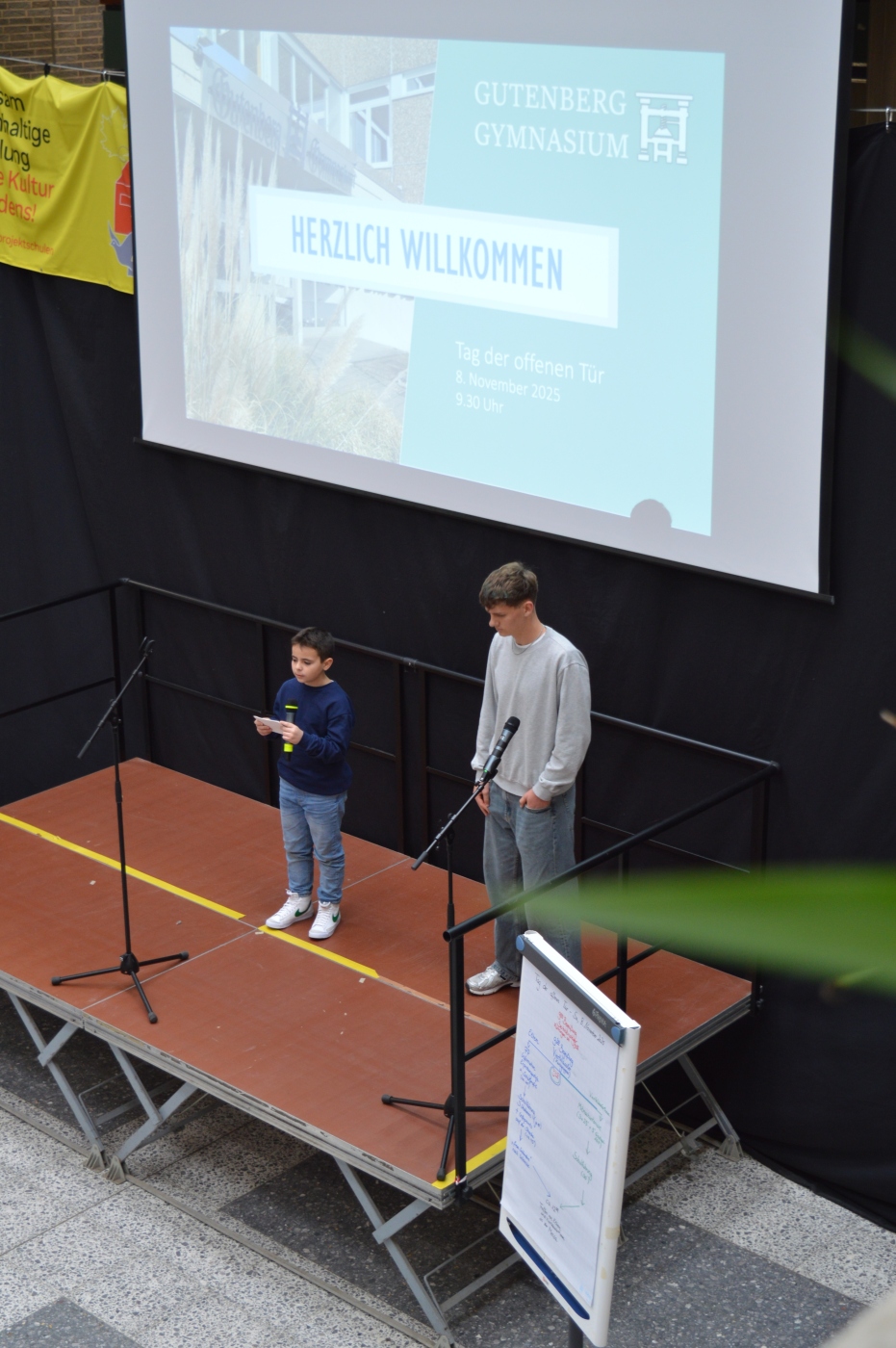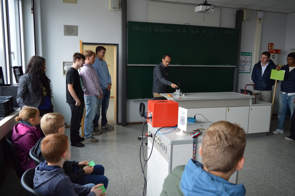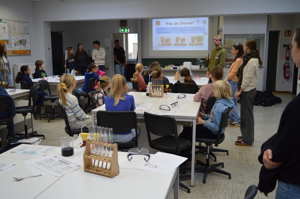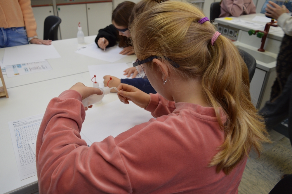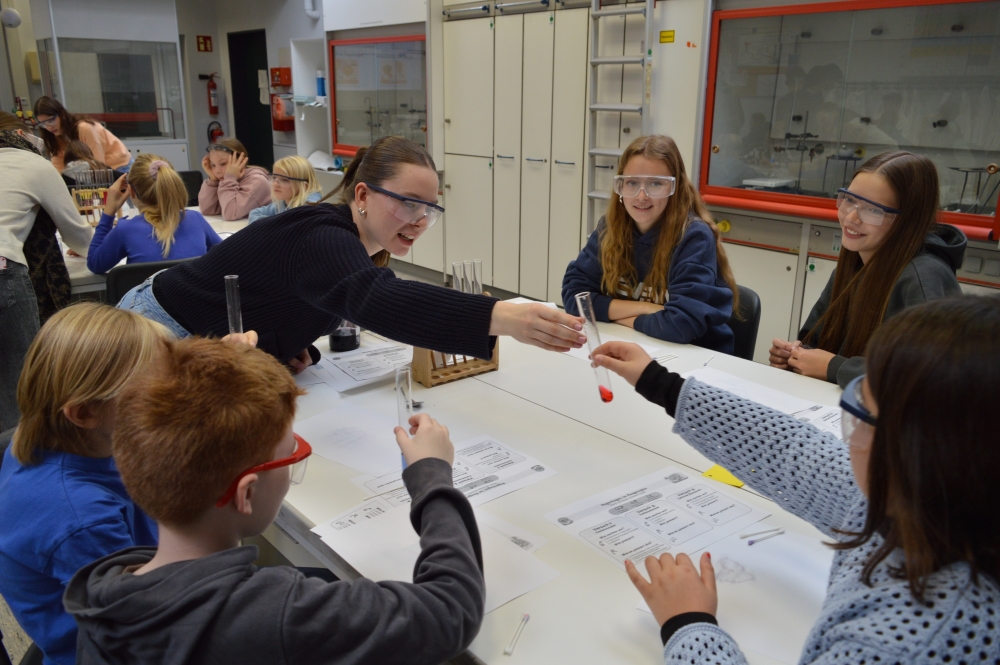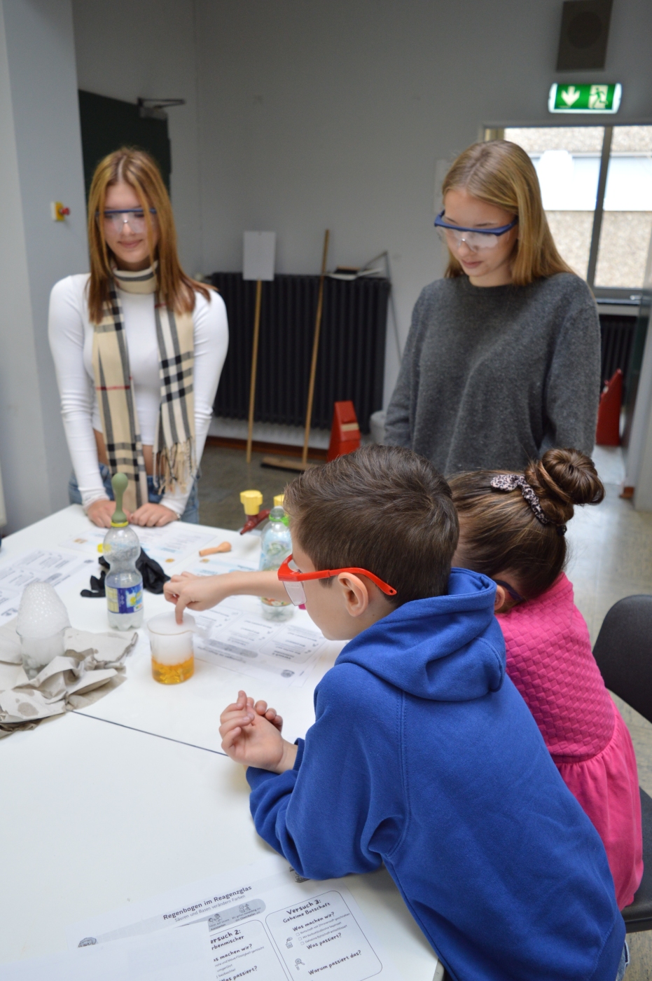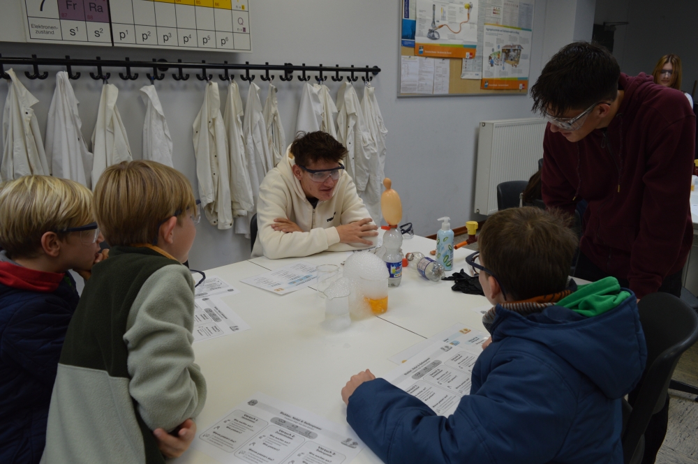 Am Samstag (8.11.2025) öffnete das GuGy wieder seine Türen für interessierte Seiteneinsteiger in die Oberstufe und Viertklässler und ihre Eltern. Vorträge und spannende Stationen im Rahmen von Führungen informierten die Eltern der Kleinen und die „Großen“ der kommenden Oberstufe über Fächer und Konzepte am GuGy. Die Kleinen schnupperten im Mitmachunterricht in die Fächer am Gymnasium hinein und machten ihre ersten Schritte im Französisch-, Informatik- und Chemieunterricht. Wer hätte gedacht, dass Spülmittel so interessant sein kann?