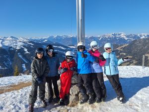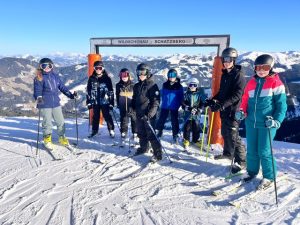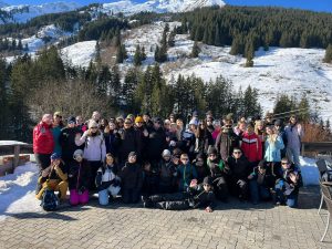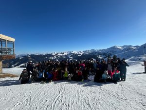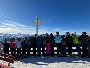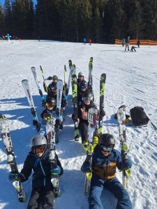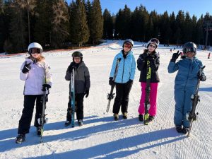 Nachdem wir endlich die Pisten erreichten, teilten wir uns in Kleingruppen, um uns aufzuwärmen und zu üben. Während der Mittagspause von 12:00 bis 13:00 Uhr aßen wir unsere Lunchpakete und unterhielten uns über unsere Fortschritte. Anschließend wurden die Gruppen nach Fahrkönnen neu zugeteilt. Alle lernten weiter in den neuen Gruppen und am Ende bewältigte die Profigruppe die Talabfahrt. Mit dem Bus erreichten alle sicher das Hotel, es gab keine Verletzten, wobei der ein oder andere Skischuh drückte…