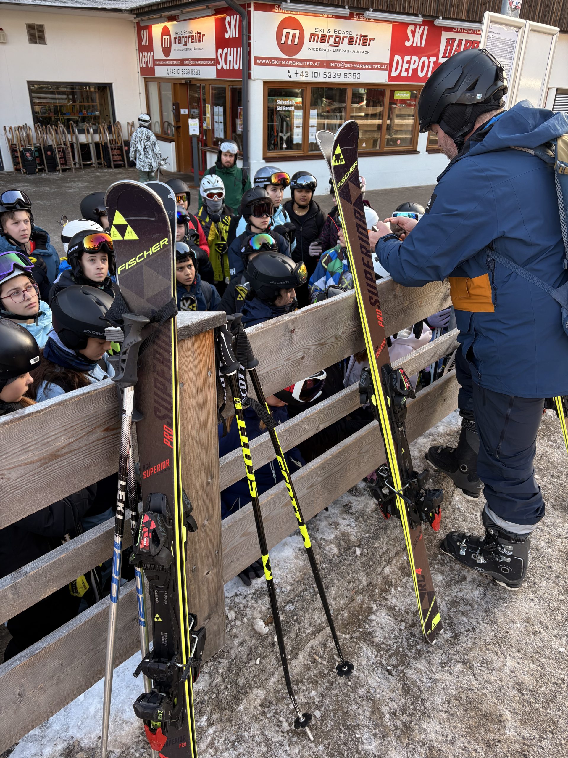 Heute wurden wir SCHON WIEDER mit Musik geweckt. Auch wenn es schwer war aufzustehen, schaffte es jeder beim Frühstück zu erscheinen. Wie gewohnt gab es Brötchen mit jeweils Aufstrich, Wurst oder Käse und Müsli. Nach dem Frühstück hatten wir bis 9:30 Uhr Zeit, uns fürs Skifahren fertig zu machen. Leider waren die Ski-Klamotten von Manchen über Nacht auf dem Balkon vergessen worden und jetzt eingefroren. Deshalb mussten wir sie morgens noch schnell reinholen, bevor sie komplett zu Eisblöcken wurden. Kurze Zeit später mussten wir in den Ski-Keller gehen, um unsere Ski-Ausrüstung abzuholen. Nach ca. 10-15 min kam unser Bus, um uns an der Talstation rauszulassen. Dort wurden wir noch schnell in neue Gruppen eingeteilt.