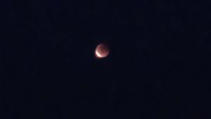Nach langem Warten konnten wir sie schließlich sehen. Die Mondfinsternis! Sie war überraschenderweise sehr klar und rötlich zu sehen. Nun hatte sich das lange Warten und Stehen gelohnt.