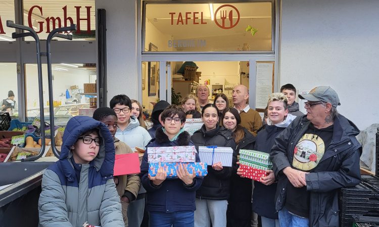 Die Übergabe fand dann am 17.12. statt. Die Mitarbeitenden der Bergheimer Tafel nahmen die liebevoll verpackten Geschenke dankbar und mit großer Freude entgegen.